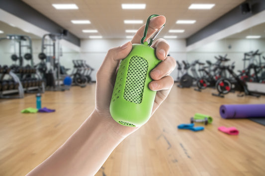 • serviette de sport multicolore sur une table de bois dans un gymnase
